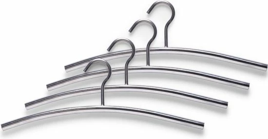 Een set met 8 hangers in de kleur zilver, voor aan een kapstok of in een garderobe. De stevige hangers zijn zeer geschikt voor jassen, ook voor zwaardere jassen.
