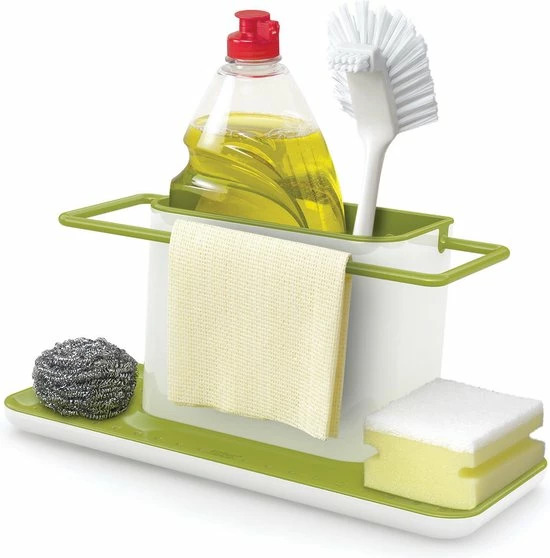 Met de Gootsteen Caddy Groot van Joseph Joseph in je keuken is een rommelig aanrecht verleden tijd! Een handige hulp voor het opbergen van afwasborstel en afwasmiddel. Een verborgen reservoir onder de organiser verzamelt het water en kan van daaruit afgevoerd worden. Makkelijk uit elkaar te halen om schoon te maken. Een musthave voor iedere keuken.