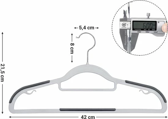 De rubberen antislipstukken zorgen voor effectieve grip waardoor uw kleding niet van de hangers afglijdt, zelfs een zijden blouse.