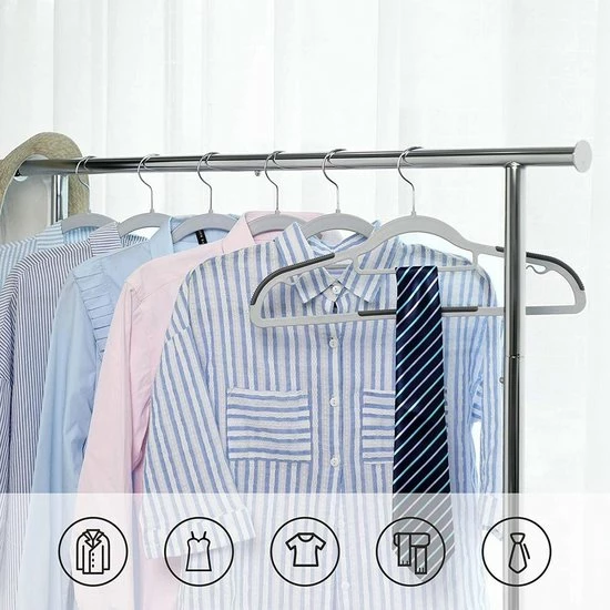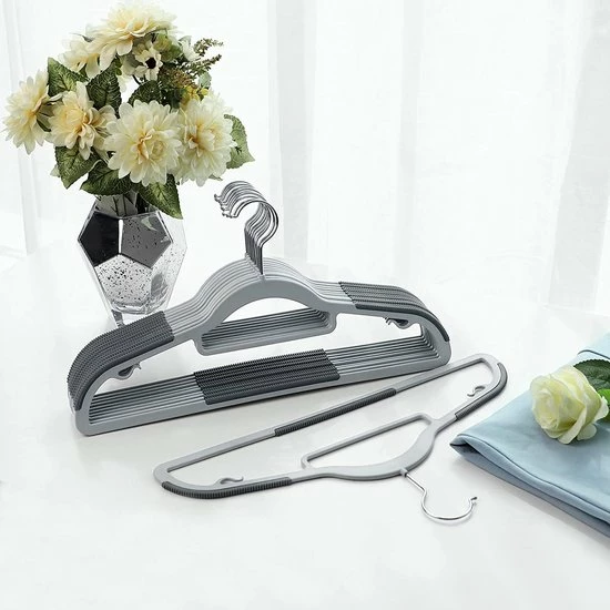 Deze kledinghangers zijn slechts 0,6 cm dik. U hoeft dus geen grotere kast te kopen, want deze slanke hangers zullen u helpen om ruimte te besparen.