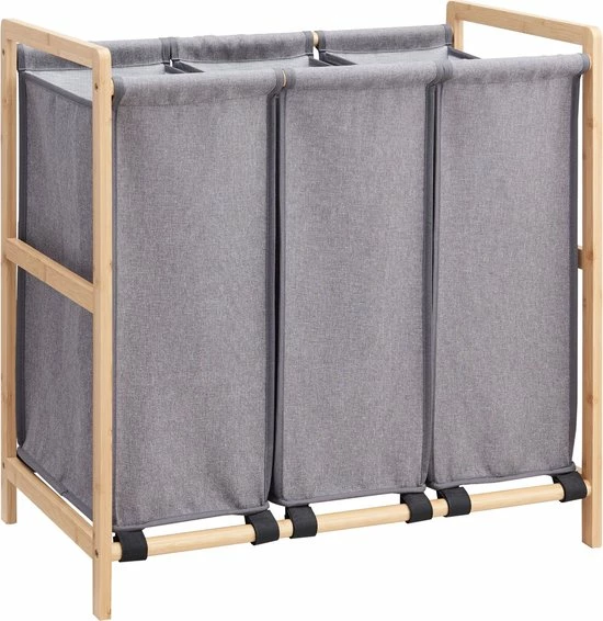 – Lichte constructie: De wasmand heeft een houten frame met twee stoffen zakken zodat je deze gemakkelijk kan optillen.