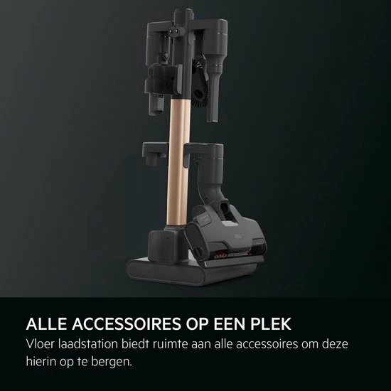 De AEG 8000 serie wordt geleverd met een oplaadstation. Je rolt de steelstofzuiger er makkelijk in om deze op te laden. Voor gebruik rol je de steelstofzuiger ook weer net zo gemakkelijk uit. Tillen is verleden tijd dankzij dit handige oplaadstation.