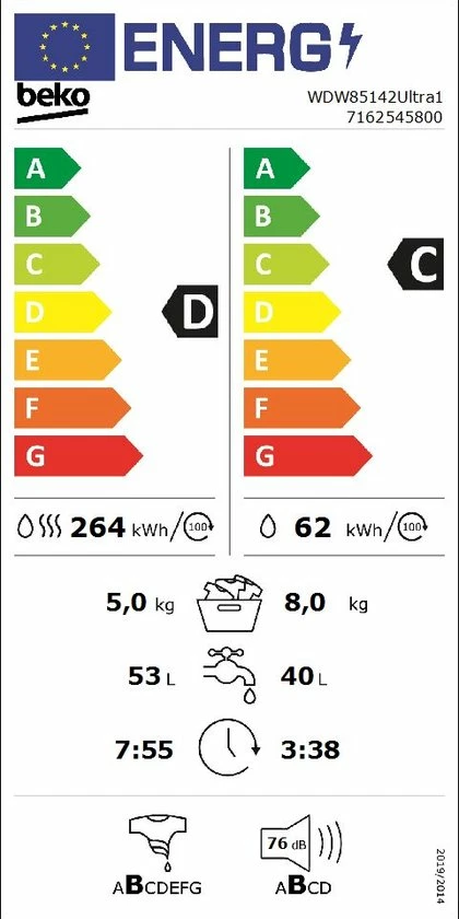 energie-efficiëntieklasse* D ( oud label A+++)
