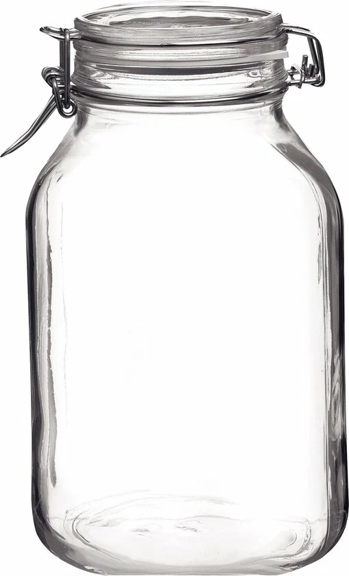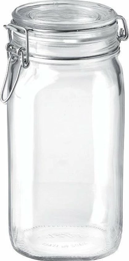 Zelf weer groenten, verse kruiden of ingrediënten opbergen was nog nooit zo leuk en vooral handig. Gebruik deze Fido weckpot van Bormioli Rocco en je etenswaren blijven voor een langere tijd vers. Deze weckpot is voorzien deksel met een scharnier. De rubberen ring zorgt ervoor dat het deksel de pot lucht- en lekdicht afsluit. Bovendien kun je met deze weckpot ook een prachtig decoratiestuk maken voor in huis. Deze Fido weckpot heeft een inhoudsmaat van 1,5 liter.