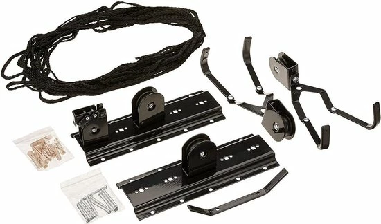 Dit is de beste manier om de ruimte in uw schuur of garage te benutten, je kan namelijk erg gemakkelijk je fiets ophangen waardoor hij niet meer in de weg hoeft te staan. Deze fietshaken zijn erg gemakkelijk te installeren en dankzij het handige systeem kan je jouw fiets ook weer gemakkelijk laten zakken wanneer je hem nodig hebt. Je kan hem dus heel gemakkelijk ophangen en weer laten zakken zonder een zware fiets te hoeven tillen.