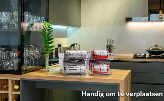 De chaos in jouw keukenkastjes, koelkast of aanrecht, is vanaf nu verleden tijd met de frisdrankblik organizer van Buxibo. Deze handige organizer van kunststof zorgt voor orde op- en rondom het aanrecht, keukenkastjes en met name je koelkast. De frisdrankblik organizer is stevig, erg multifunctioneel en alle conservenblikken, frisdrankblikjes, potjes, flesjes of andere zaken zijn in een oogopslag bereikbaar. De organizer heeft twee etages en mag niet ontbreken in jouw moderne keuken!