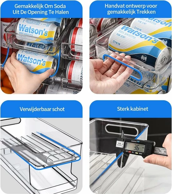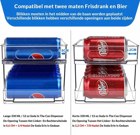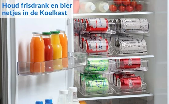 Met deze praktische frisdrankblik organizer kun je al je blikken en eigenlijk alles wat je wilt gemakkelijk en overzichtelijk organiseren. Dit rek kun je neerzetten in de keuken of koelkast, maar ook op een alternatieve plaats zoals studeerkamer of zelfs in de woonkamer als je een feestje geeft. Het is een eenvoudige manier om extra ruimte te creëren en ophoping van troep te voorkomen. Het materiaal is vuil- en waterafstotend en kan eenvoudig schoongemaakt worden met een vochtige doek.