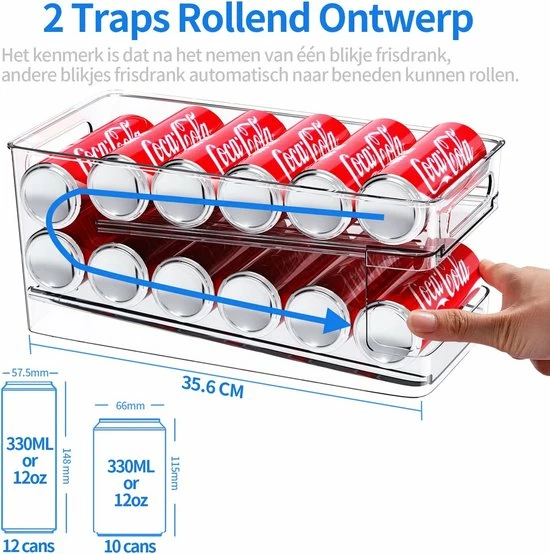 Dankzij het ontwerp rollen de blikjes of conservenblikken automatisch naar voren als de eerste uit de organizer wordt gepakt. Dit scheelt organiseren van je koelkast of voorraadkast en je kan direct zien hoeveel bikjes er nog in de dispenser zitten.