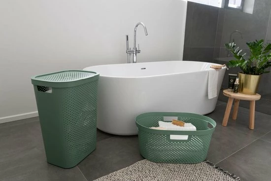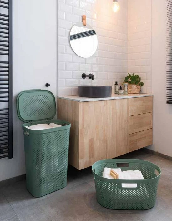 - Curver Infinity Dots Wasmand met deksel – 60L – Groen – Recycled Kunststof