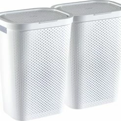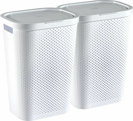 - 2x Curver Infinity Recycled Dots Wasmand met deksel – 60L – Wit