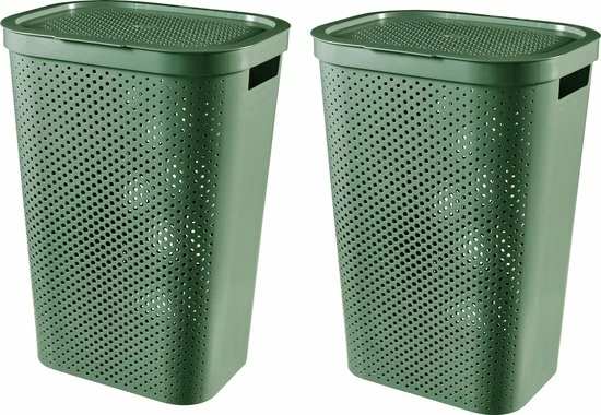 - Curver Infinity Dots Wasmand met deksel – 60L – 2 stuks – Groen – Recycled Kunststof