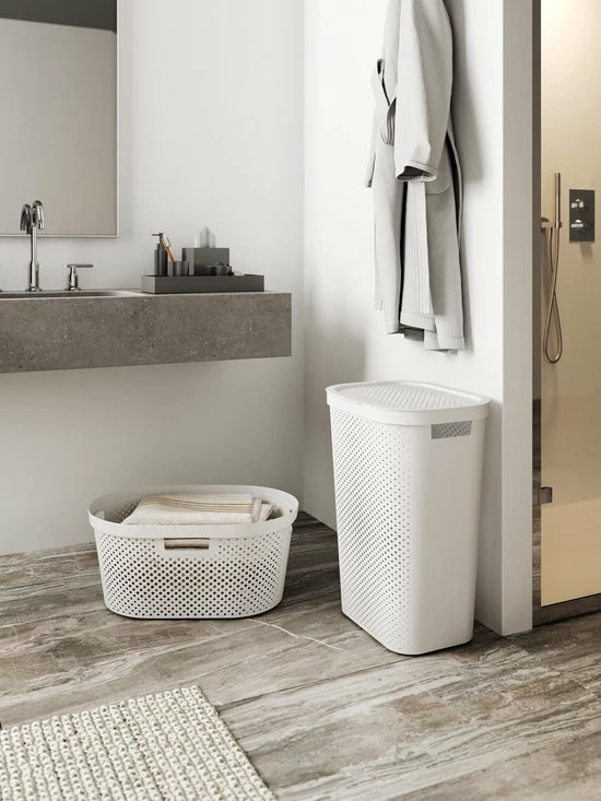 De Curver Infinity Recycled wasmanden zijn geïnspireerd op scandinavische design en nu volledig gemaakt van gerecycled materiaal. Voorzien van 4 comfortabele handgrepen en gemakkelijk schoon te maken. Dankzij de open structuur lucht het wasgoed voldoende.