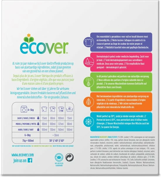 Ecover Waspoeder Color zorgt ervoor dat jouw kleren de grondige schoonmaakbeurt krijgen die ze verdienen.