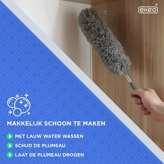 Als de plumeau eenmaal vuil is van al het stof, kun je hem er gewoon uithalen en weer aan het werk gaan. Is de plumeau zwaar vervuild? Daarna kun je het wassen met water en laten drogen. Een nieuwe is niet nodig!