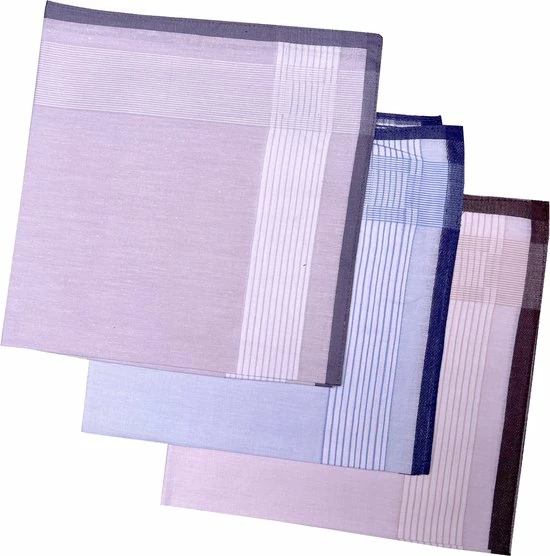 Een goede kwaliteit zakdoek voor een schappelijke prijs. Deze 100% katoenen zakdoeken zijn verkrijgbaar in diverse designs en worden geleverd in een verpakking met drie verschillende kleuren. De zakdoeken kunnen worden gewassen op 60°. Natuurlijk ook leuk om cadeau te geven.