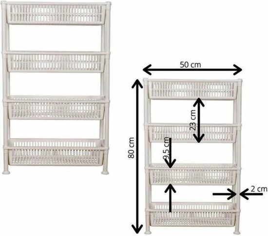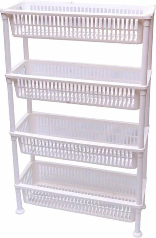 Dit reuze handige 4-laagse rek is slechts 20 cm breed en past daardoor op plekken die anders loos zouden zijn. Erg praktisch in de keuken, badkamer, schuur, slaapkamer….