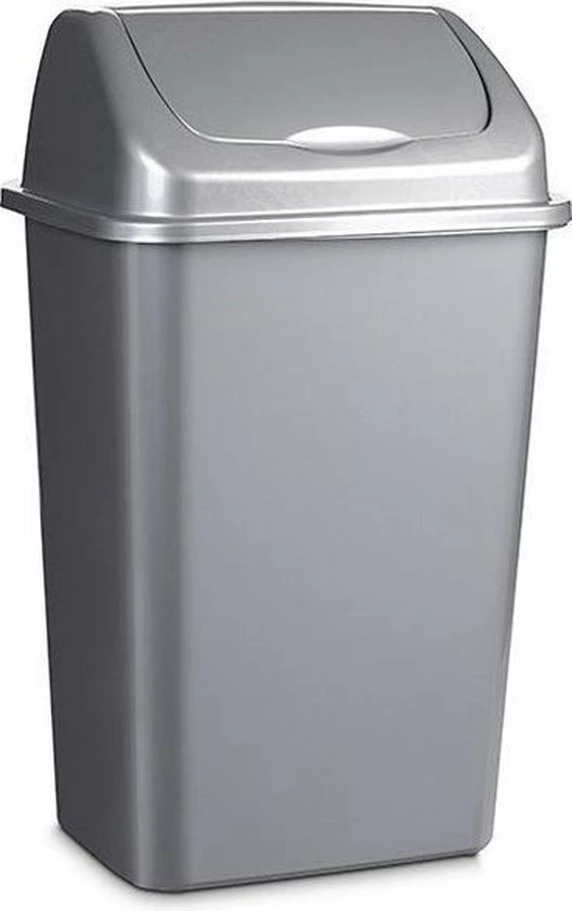 Afvalemmers/vuilnisemmers in de kleur zilver van 30 liter met klapdeksel. Materiaal: kunststof. Afmetingen: ca. 34,5 x 27.5 x 58.5 cm. Ideaal voor in de keuken, slaapkamer of op kantoor. Afvalemmers/vuilnisemmers/prullenbakken/prullenmanden voor thuis.
