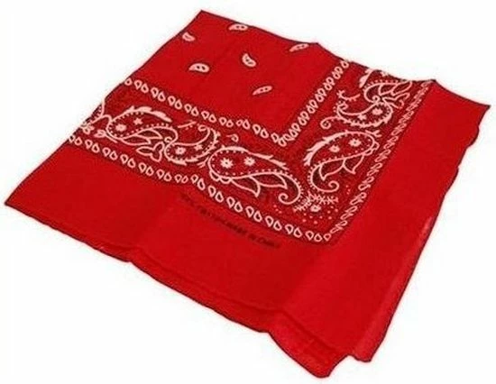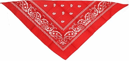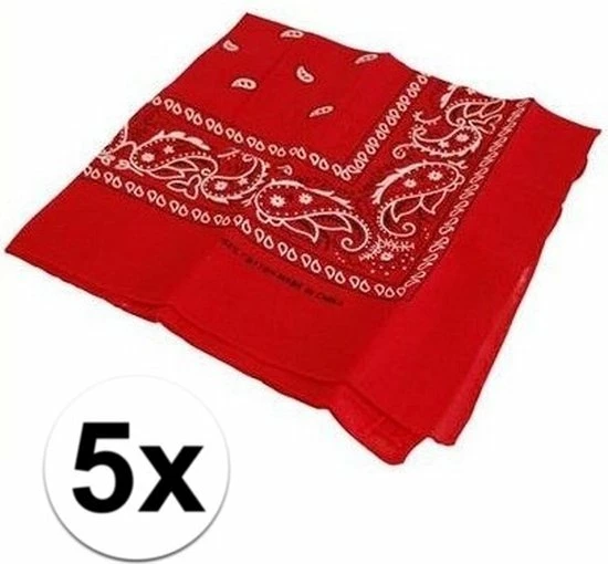 5 rode boeren zakdoek. Deze driehoekige rode boeren zakdoek kan ook gebruikt worden als sjaal of bandana. Afmeting zakdoek uitgevouwen: 78 x 36 cm.
