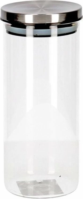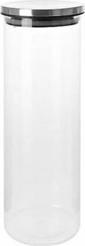 1x stuks transparante bewaarpotten/voorraadpotten/voorraadbussen met deksel. Het deksel is lucht/geurdicht, waardoor de inhoud vers en vochtvrij blijft. Afmeting: ca. 10 x 10 x 29 cm. Inhoud: ca. 1650 ml. Materiaal: hardglas. Geschikt voor de vaatwasser.