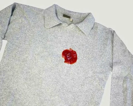 Wrijf vervolgens stof op stof en spoel het goed uit met warm water. Bij hardnekkige vlekken is herhaling mogelijk.