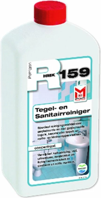 1 L HMK R159 – Keramische reiniger – MoellerHMK R159 is een speciale reiniger die vuil, kalkaanslag, urine vlekken, zeepresten, licht cement en gewrichts mortel van geëmailleerd en niet geëmailleerd keramische tegels, sanitaire artikelen en bakstenen producten verwijdert.HMK R159 reinigt ook gewrichten rond tegels en sanitaire apparaten.Voor binnen-en buiten gebruik.Speciaal reinigingsmiddel voor geëmailleerd en ongeemailleerd tegels, sanitaire apparaten en keramische tegels.Verwijdert vuil, kalksteen, urine vlekken, zeepresten en mortel sporen van keramische tegels en sanitaire artikelen.Consumptie:Ongeveer 10 tot 100 m2/L