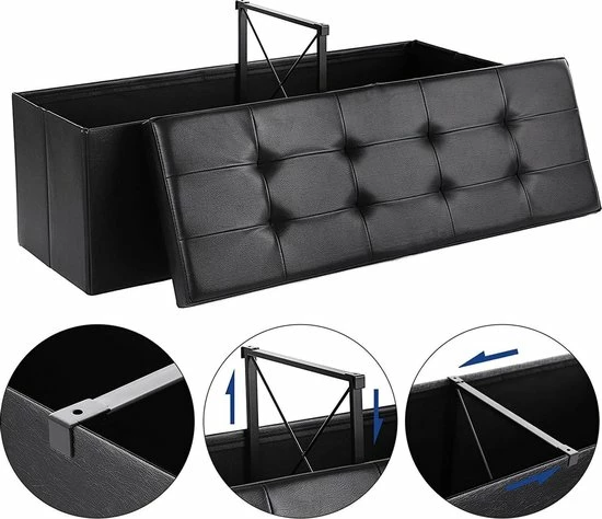 Grote opbergruimte – De zitkist met 120 L interieur biedt voldoende ruimte voor het opbergen van spiegelspullen, kussens, dekens, kleding, tijdschriften etc. Afscheid van stoornis