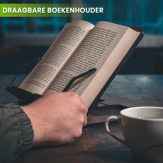 De boekenhouder heeft een verstelbaar ontwerp. Hierdoor kun jij jouw boek of tablet altijd in de juiste hoek afstellen. Je hoeft hierdoor nooit meer voorover te bukken om de tekst te kunnen lezen of het scherm te kunnen zien