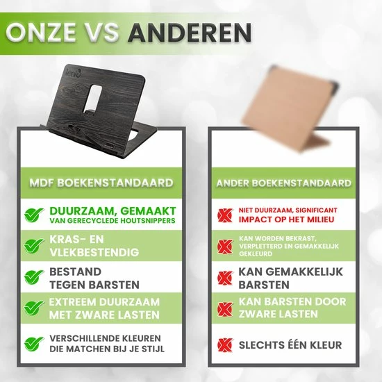 ➥ Hoogwaardige kwaliteit – De boekenstandaard en tabletstandaard is gemaakt van hoogwaardig 8 mm hout. Hierdoor blijft jouw boek of tablet altijd stevig staan!