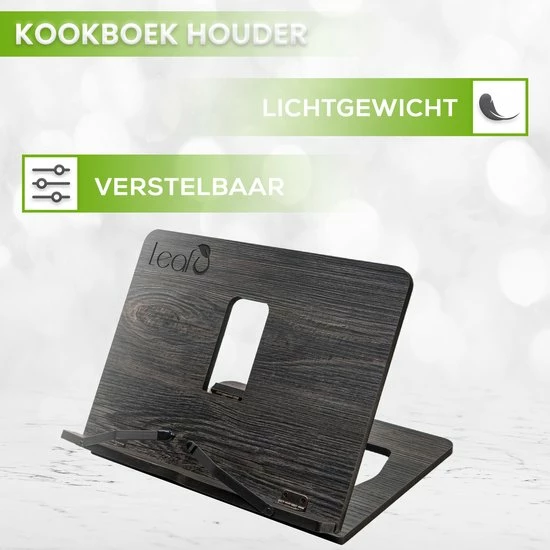 Tijdens het koken met een kookboek, werken met een tablet of leren met een schoolboek wil je natuurlijk duidelijk zicht hebben op de tekst en het scherm. Een boekenstandaard kan dan zeker niet ontbreken! Deze stijlvolle gerecycled houten LeafU boekenstandaard is het ideale hulpje voor het vasthouden van jouw (kook)boeken en tablet, waardoor jij ongestoord aan het werk kunt gaan.
