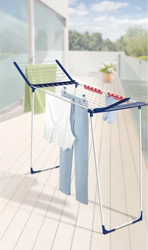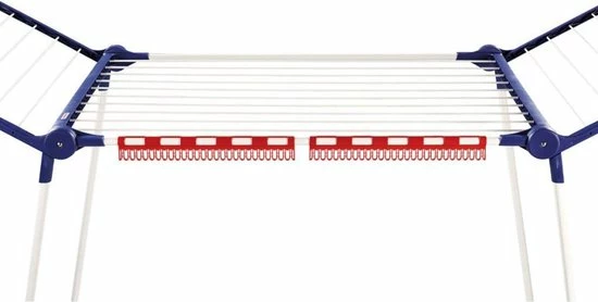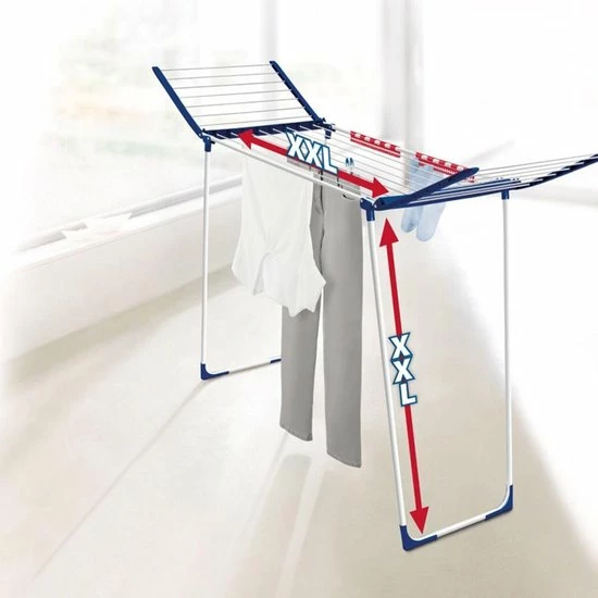 Dit XXL droogrek biedt bijzonder veel ruimte voor je was, zowel in de hoogte als in de breedte. Niet alleen lang maar ook breed wasgoed kun je gemakkelijk kwijt op de droogstangen met een lengte van 1,10 meter. Ook passen er meerdere kledingstukken naast elkaar. Een ander voordeel van dit droogrek is de comfortabele hoogte. Je kunt zonder bukken en zonder rugpijn de was ophangen, dankzij de ideale werkhoogte van 1,08 meter.