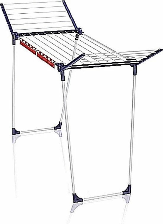 De Pegasus 180 Solid MAXX is slechts 55 cm breed en past gemakkelijk door alle deuropeningen. Met zijn twee uitklapbare vleugels heeft de Pegasus 180 Solid MAXX een totale drooglengte van 18 meter en biedt hij ruimte voor twee wasmachineladingen. Bij dit droogrek horen twee houders voor klein wasgoed. Daaraan hang je snel en ruimtebesparend sokken, slipjes en andere kleine spullen op. De droogstangen hebben een speciale roestwerende coating. Daardoor is de Pegasus 180 Solid MAXX geschikt voor binnen en buiten. Blijft ook bij wind veilig en stabiel staan.