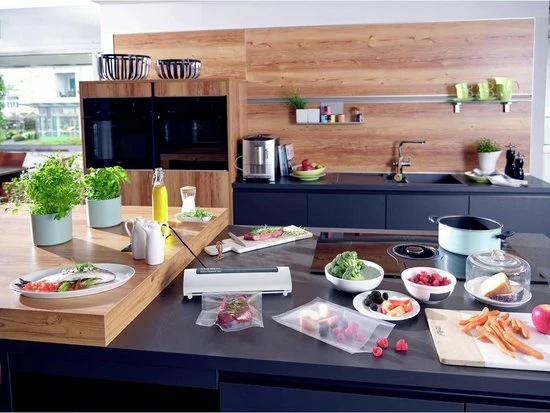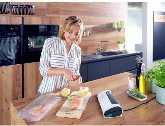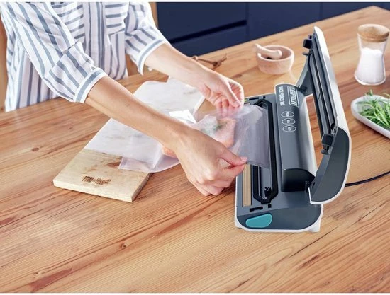 Elektrisch en volautomatisch vacumeren van levensmiddelen met vacuümmachine Vacu Power 100 van Leifheit.