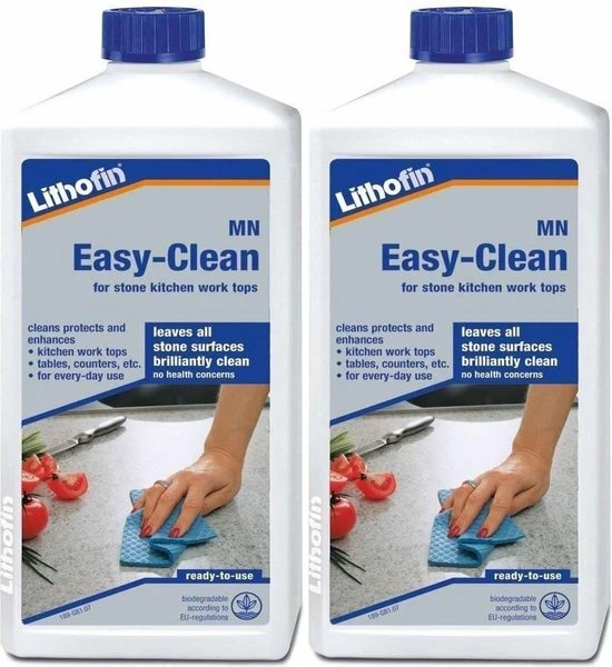 Gelijktijdig zorgen additieven ervoor, dat -bij regelmatig gebruik- de beschermende werking van een impregnering niet nadelig wordt beïnvloed. Het oppervlak kan zo lange tijd vlekvrij blijven. Lithofin MN Easy-Clean verspreidt een aangename geur. Opmerking: Op met Lithofin Vlekstop geïmpregneerde oppervlakken behoudt en ondersteunt Lithofin MN Easy-Clean de werkzaamheid van de beschermende laag.