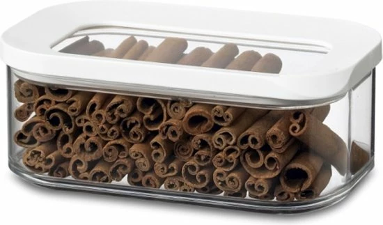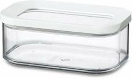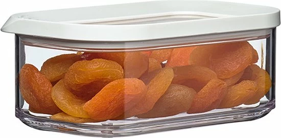 Bewaardoos Modula 425 ml, voorzien van een doorzichtige deksel met witte ring. Deze kleine voorraaddoos met afgeronde hoeken heeft een inhoud van 425 ml en geeft direct zicht op inhoud, ook in de keukenla! De witte afdichtring zorgt voor een perfecte afsluiting, waardoor deze voorraaddoos geschikt is voor het bewaren van droge etenswaren zoals rozijnen, noten of snoep. De Modula bewaar- en opbergdozen van Mepal zijn verkrijgbaar in verschillende maten en uitvoeringen, liggen goed in de hand en zijn makkelijk te openen. Bovendien zijn ze stapelbaar en vaatwasmachinebestendig. Hoe veeleisend u ook bent: Modula bewaardozen zijn erop berekend!