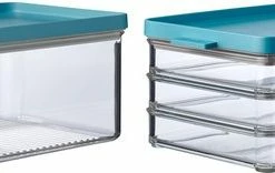 De Omnia vleeswarendoos, 3-laags, helpt je graag met het bewaren en vershouden van jouw favoriete vleeswaren. Of je nu gek bent op ontbijtspek of liever voor een plakje boterhamworst gaat; met deze vleeswarendoos voor de koelkast kan het allemaal! De lagen sluiten perfect op elkaar aan, waardoor de inhoud lekker vers blijft. De bovenste laag is bovendien voorzien van een deksel, waardoor deze volledig lucht- en aromadicht afgesloten wordt. Ook is de deksel zo vormgegeven, dat er gemakkelijk meerdere Omnia koelkastdozen op elkaar gestapeld kunnen worden. Hoeveel verschillende soorten beleg je ook wilt bewaren, met deze Omnia bewaardoos houd je alles netjes bij elkaar.