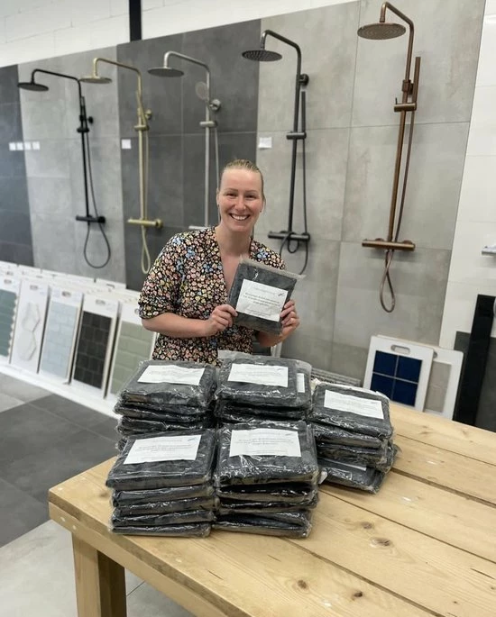 Ik zou zeggen kom eens langs in de showroom om de Quick Dry droogdoek™ uit te proberen. Heb je geen tijd om langs de showroom te komen of woon je te ver weg? Bestel de doek dan online en wij zorgen dat de doek (tijdelijk) gratis bij jou thuis wordt afgeleverd. www.frmtegelwerk.nl/droogdoek