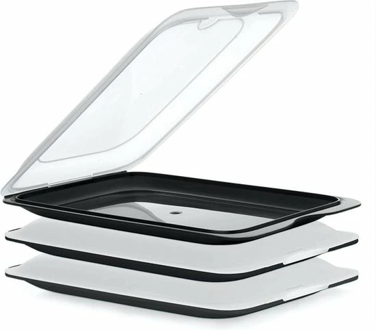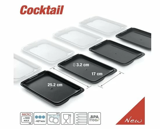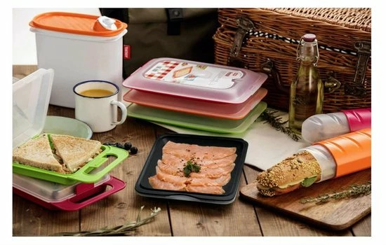 Optimale bewaring in de koelkast voor worst, kaas en worst. Ruimtebesparend stapelbaar Veilig sluitsysteem met afneembaar deksel. Geschikt voor plakjes ham, etc. Afmetingen 17 x 3,2 x 25,2 cm Ze zijn vaatwasmachinebestendig, magnetron en vriezer (van -40 ° C tot 100 ° C) Het Fresh-systeem houdt het voedsel in een luchtvochtigheid die geschikt is voor een lange houdbaarheid voor koude vleeswaren met geïntegreerde serveerschaal. BPA-vrij plastic van topkwaliteit, gemaakt in de EU