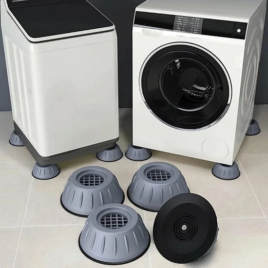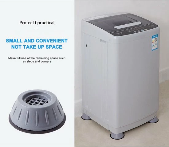 Demp geluid en trillingen van je wasmachine en droger met de Wasmachine Demper (Trillingsdemper). Elke set bevat 4 schokdempers. Het trilmat systeem hebben we uitgebreid en in de vorm van poten geplaatst. De poten hebben de beste geluidsdempende werking van alle dempers op de markt. Ze zijn extra dik en hebben een systeem ingebouwd inplaats van alleen rubber. De trillingsdempers zijn universeel en passen makkelijk onder elke wasmachine, droger of vaatwasmachine. Naast het dempen van trillingen en geluid voorkomen de trillingsdempers ook dat je wasmachine of droger schade veroorzaakt aan de ondergrond.