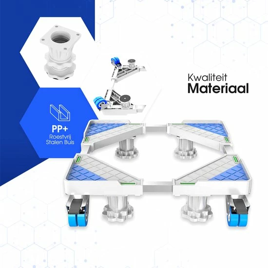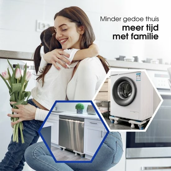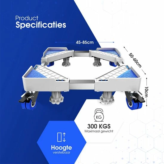De stevige poten van de MM Brands wasmachine verhoger houden jouw wasmachine, minikoelkast, tafels en andere zware meubels van tot wel 300 kg op hun plaats. Door de flexibele wielen die eronder bevestigd zijn kun jij het meubel verplaatsen wanneer nodig. Bijvoorbeeld bij een verjaardag of tijdens het klussen in huis.