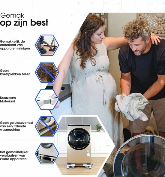Ook wij zitten wel eens met de handen in onze haren wanneer wij een wasmachine of ander zwaar meubel moeten verplaatsen. Om jou deze moeite, rugpijn en bezwete oksels te besparen, hebben we de ideale meubeltransporter gecreëerd. Dit meubelhondje van MM Brands verplaatst niet alleen meubels, maar is ook een stevige standaard en verhoger voor jouw wasmachine.