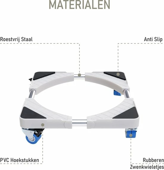 Dit product is een ideale keuze als u een koelkast, een wasmachine, een droger, een minikoelkast of meubels zoals een servieskast, een garderobekast, enz. Heeft en is een goede vloerbeschermer. De verstelbare koelkaststandaard kan worden aangepast aan een breedtebereik van 45-75 cm, aan de zijkanten, van 44-75 cm en de basis kan worden verhoogd tot een hoogte van 10 tot 13 cm.