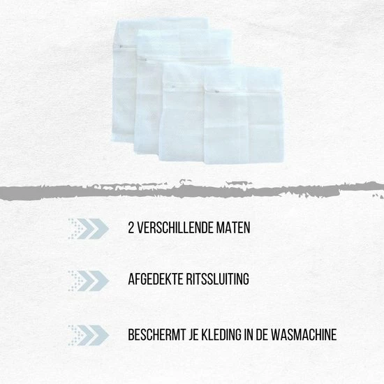 Deze waszak 4 stuks van Orange85 beschermt je kleding tegen beschadigingen door de wasmachine. De set bevat twee verschillende maten: 40 x 30 cm en 30 x 25 cm. Van beide maten ontvang je 2 waszakken. De ritssluiting is aan het uiteinde bedekt waardoor andere kleding in de wasmachine niet beschadigd kan raken door de rits. Door bijvoorbeeld je lingerie in een waszak te wassen blijven deze een stuk langer mooi.