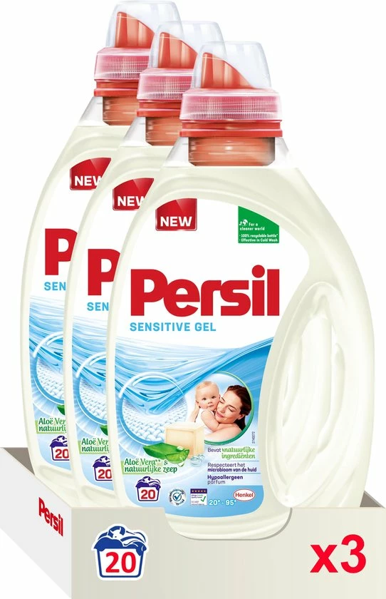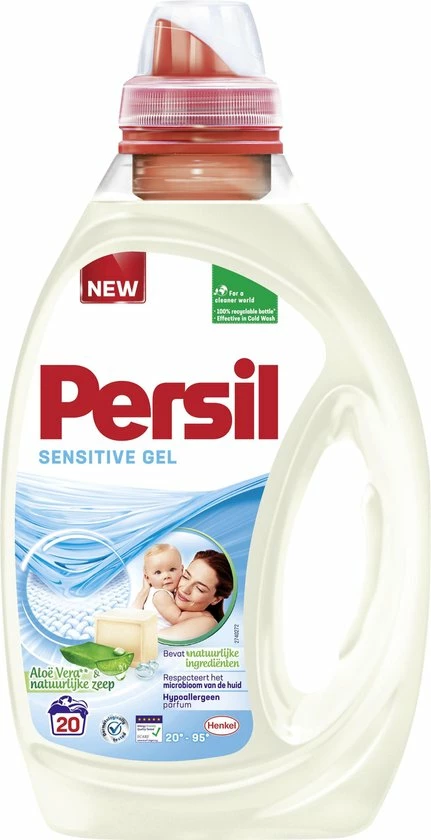 Persil Sensitive Gel, is een vloeibaar wasmiddel, speciaal ontwikkeld voor de gevoelige huid. Het vloeibare wasmiddel zorgt voor een heerlijke hygiënisch schone was. Persil Sensitive is geschikt voor de witte, gekleurde en fijne was en je kunt het gebruiken voor alle textielsoorten. Persil is al meer dan 100 jaar uw vertrouwde vlekkenspecialist. Onze producten bieden een complete 360 graden oplossing voor uw was. De innovatieve Persil formule biedt u krachtige vlekverwijdering, langdurige frisheid en is zacht voor de vezels. Hiermee krijgt u een stralend schone en frisse was.