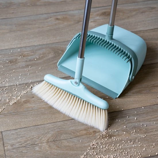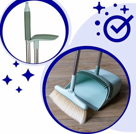 Deze veger en blik staat niet in de weg & hoeft u niet meer helemaal naar de grond te bukken! Dit scheelt niet alleen tijd maar ook nog eens uw rug. Met de mooie uitstraling en groene kleur valt hij nog meer weg in uw huiskamer. De bezem heeft een groot bereik zo bent u sneller klaar met vegen!