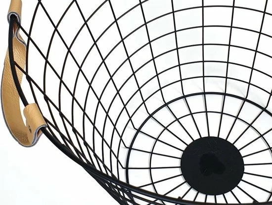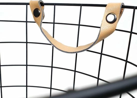 De opbergmand is gemaakt van staal in de kleur zwart. De handvaten zijn gemaakt van een goede kwaliteit leer en zitten aan de bovenkant van de mand vast. Daarmee is de QUVIO opbergmand een geschikte woonkameraccessoire om op een stijlvolle manier uw spullen op te kunnen bergen.