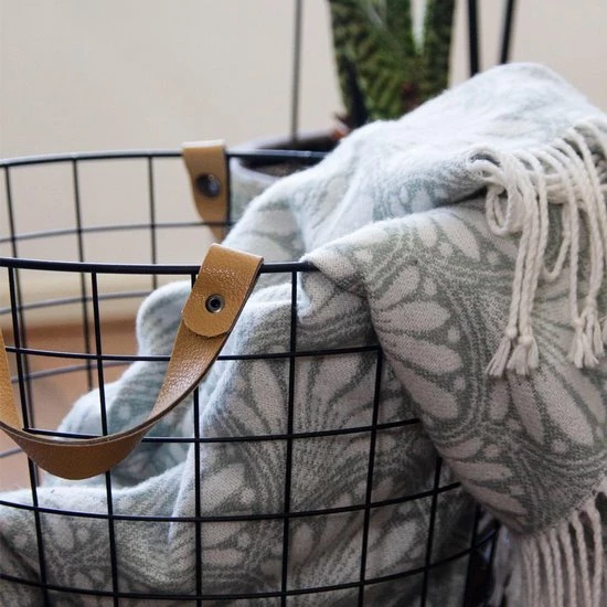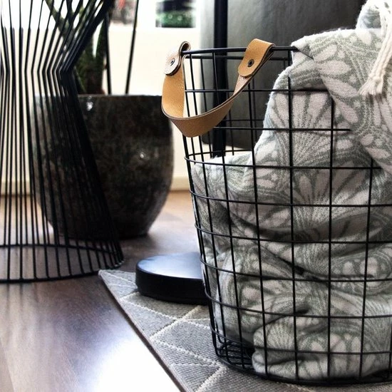 Door de leren handvaten is de mand gemakkelijk te verplaatsen. Je kan de mand in de woonkamer neerzetten om daar bijvoorbeeld kleedjes in op te bergen, maar ook is de mand handig voor het opbergen van tijdschriften, huishoudspullen, sjaals en handschoenen, kranten en nog veel meer!