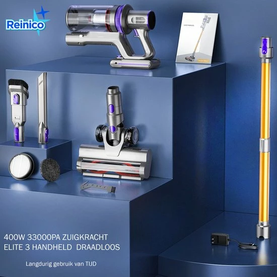 Krachtig en duurzaam – Ingebouwde 400 W borstelloze motor en 7 * 2500 mAh Li-ion batterij, elite 3 draadloze stofzuiger kan een uitstekende zuigkracht produceren tot 33 Kpa en kan 50 minuten continu autonoom werken in eco-modus (15 min in Boost-modus) . Volledig opladen duurt slechts 4 – 4.5 uur.