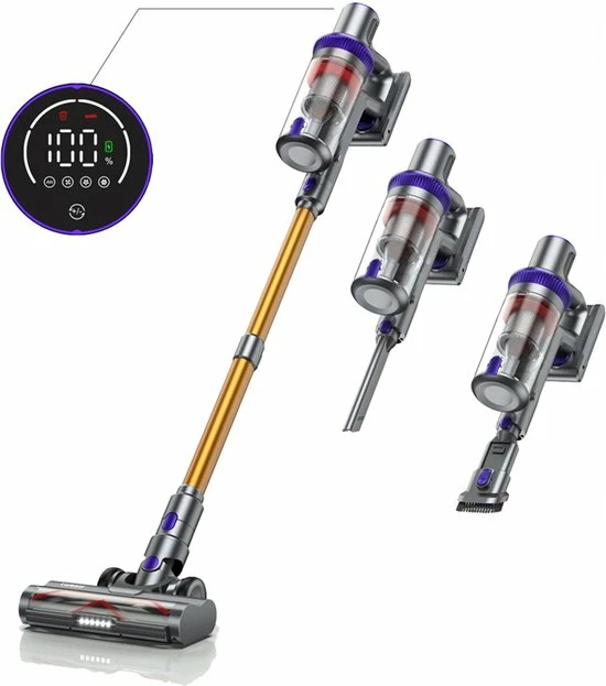 Gehumaniseerd ontwerp – Grote stofopname capaciteit van 1.5 liter kan de leesfrequentie effectief verminderen en onderbrekingen verminderen. De wandmontage van de draadloze stofzuiger kan accessoires bevatten, dingen netjes en opgeruimd houden was nog nooit zo eenvoudig! Het kopen van een reservebatterij kan de levensduur van de batterij verdubbelen.
