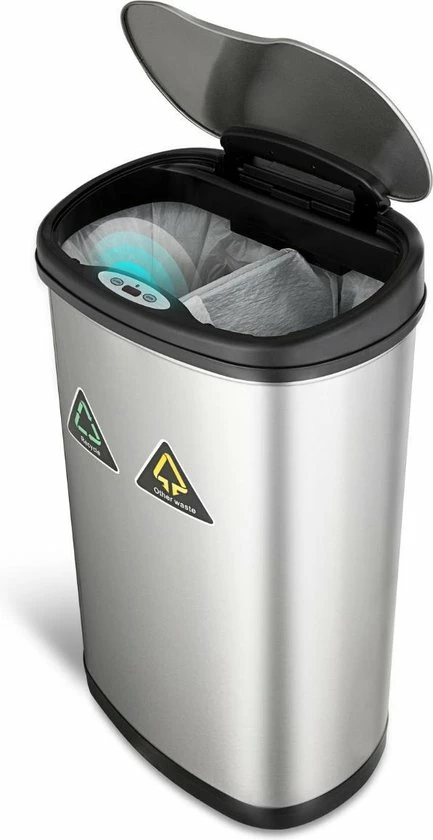 Dankzij de ingebouwde sensor gaat het volledig automatisch. Geen vieze handen meer en u beperkt de bacterie verspreiding enorm, dus het is een stuk gezonder leven. De prullenbak is ook nog eens erg stijlvol en uitstekend geschikt voor iedere kamer in huis of op kantoor. En eenvoudig uw afval scheiden door de 2 ophangsystemen die zich bevinden in de prullenbak.
