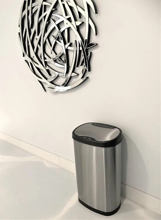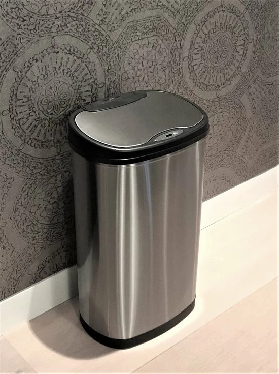 Conclusie is dat deze prullenbak uw leven een stuk aangenamer maakt. Minder poetsen, beperkte bacterie verspreiding, zelfs de vuilniszakken vervangen gaat een stuk eenvoudiger. Ipv een grote, zware bak waar u uw vuilniszakken in vervangt, beschikt deze prullenbak over een erg handig en licht ophangsysteem waar u uw vuilniszak eenvoudig in hangt. De prullenbak heeft een inhoud van 50 liter en is van roestvrij staal. Zeer eenvoudig te onderhouden en te reinigen. Deze afvalbak met sensor is volledig automatisch en op de toekomst gericht. Ga mee met de tijd en schaf hem nu aan!